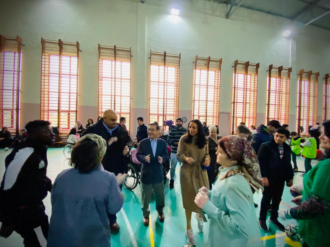 This event was organized within the auspices of "Fostering and enabling environment and opportunities for youth and people with disabilities to promote equity, access, and inclusion" project, funded by EC and aimed at fostering and enabling environment and bringing opportunities for youth and people with disabilities to promote equity, access, and inclusion. With this initiative, AKAH shows its utmost support by underlining the importance of fostering an inclusive culture and responding to the urgent needs of people with disabilities in all aspects of society. During the event, the Irbis trainers conducted different pieces of training for disabled people. As a result, there was an excellent atmosphere of joy and inclusion. Children were also excited when the heads of international organizations joined them in dancing and playing games.