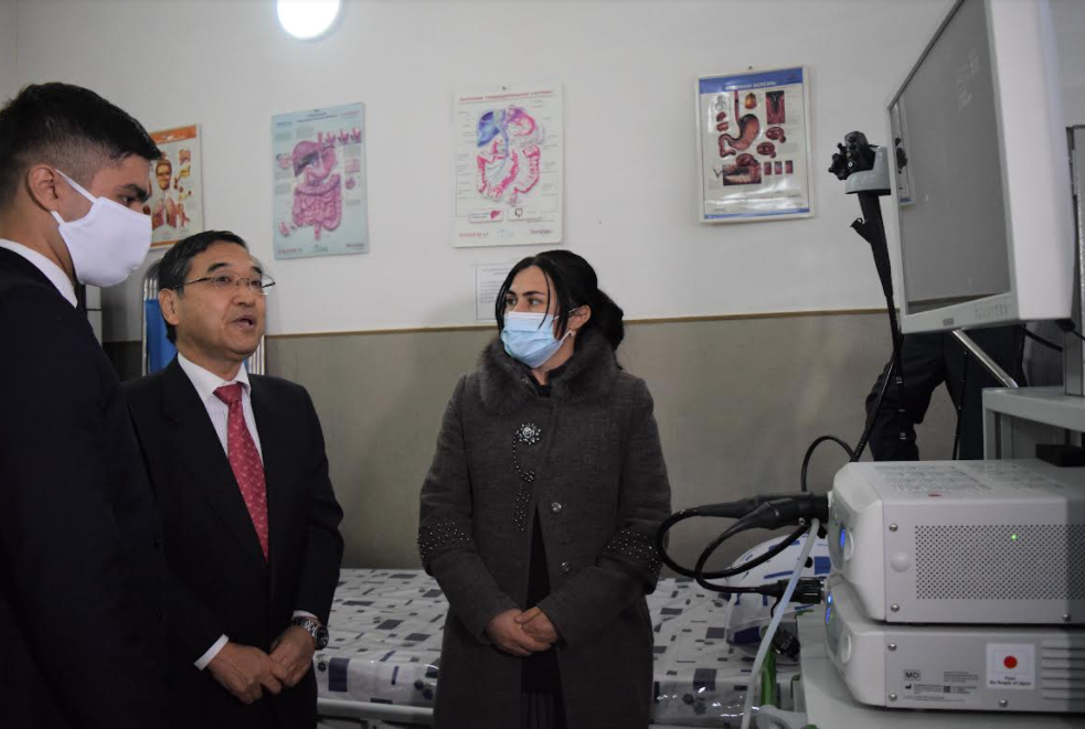 On Thursday December 9, the Ambassador of Japan to Tajikistan, Mr. Takayuki Miyashita, together with Mr. Sirojiddin Rahmnzoda, Head Physician of Central Hospital in Vahdat Township attended the handover ceremony of successful completion of The Project for Improvement of Medical Equipment of Central Hospital in Vahdat Township.