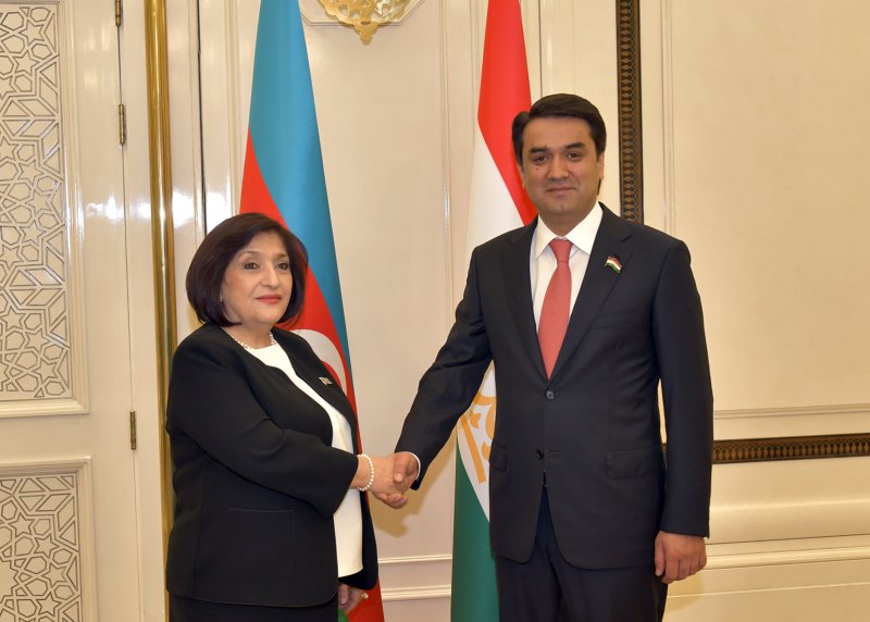 Rustam Emomali then met with Ms. Sahiba Gafarova, the Speaker of the Milli Mejlis (the unicameral National Assembly) of Azerbaijan.