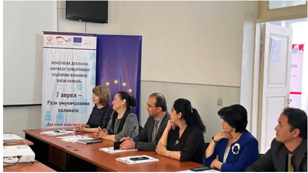 The European Union (EU) Delegation to Tajikistan says the European Union, German Federal Ministry for Economic Cooperation and Development (BMZ), Deutsche Gesellschaft für Internationale Zusammenarbeit (GIZ) GmbH in cooperation with the State Institution “Republican Educational and Clinical Center of Family Medicine” (RECCFM) of the Ministry of Health and Social Protection of the Population of the Republic of Tajikistan (MoHSPP) conducted a series of events dedicated to the World Health Day (WHD).