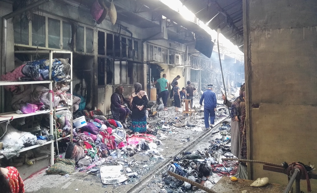 Fire broke out at the central market “Farovon” in Bokhtar, the capital of Khatlon province, yesterday night. Twelve people were injured; one of them is in critical condition.