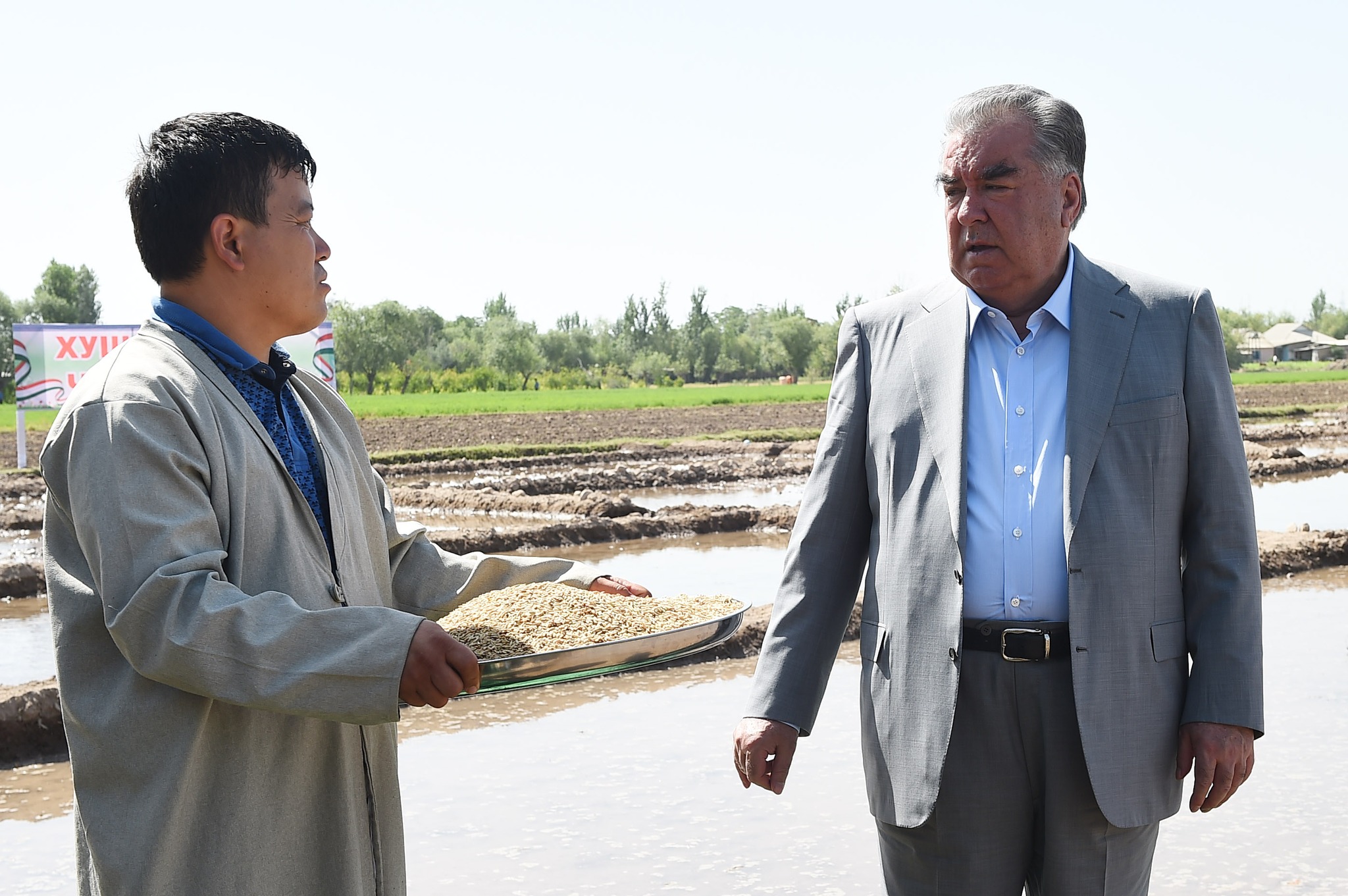 In the Closed Joint-Stock Company (CJSC) Juntai-Khatlon Sin Silu, which is a Tajik-Sino joint venture, Emomali Rahmon got acquainted with the course of the growing season of cotton.