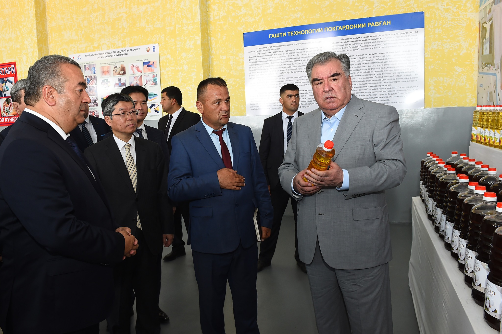 Rahmon attended an official opening ceremony of Ganji Deha Limited Liability Company (LLC) in this farming unit. Ganji Deha LLC will produce vegetable oil and plastic containers and bottles.