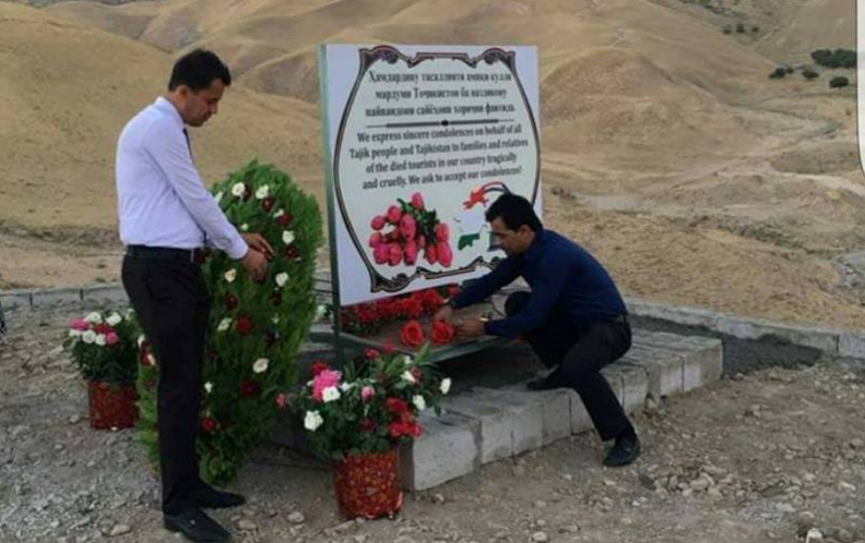 A memorial plaque to commemorate four foreign cyclist tourists was installed at the scene of the attack near the Safobakhsh village on August 2, 2018. The commemorative plaque was reportedly installed by the Danghara district administration.