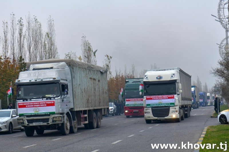 According to Sharifzoda, the assistance includes 300 tons of wheat flour, 20,000 liters of vegetable oil, 100 tons of wheat, 100 tons of rice and pasta, 1,500 tons of coal, 2,000 tons of cement, 500 tons of drinking water, 5,000 slate sheets, 100 cubic meters of wood, and more than 40,000 of laundry soaps.