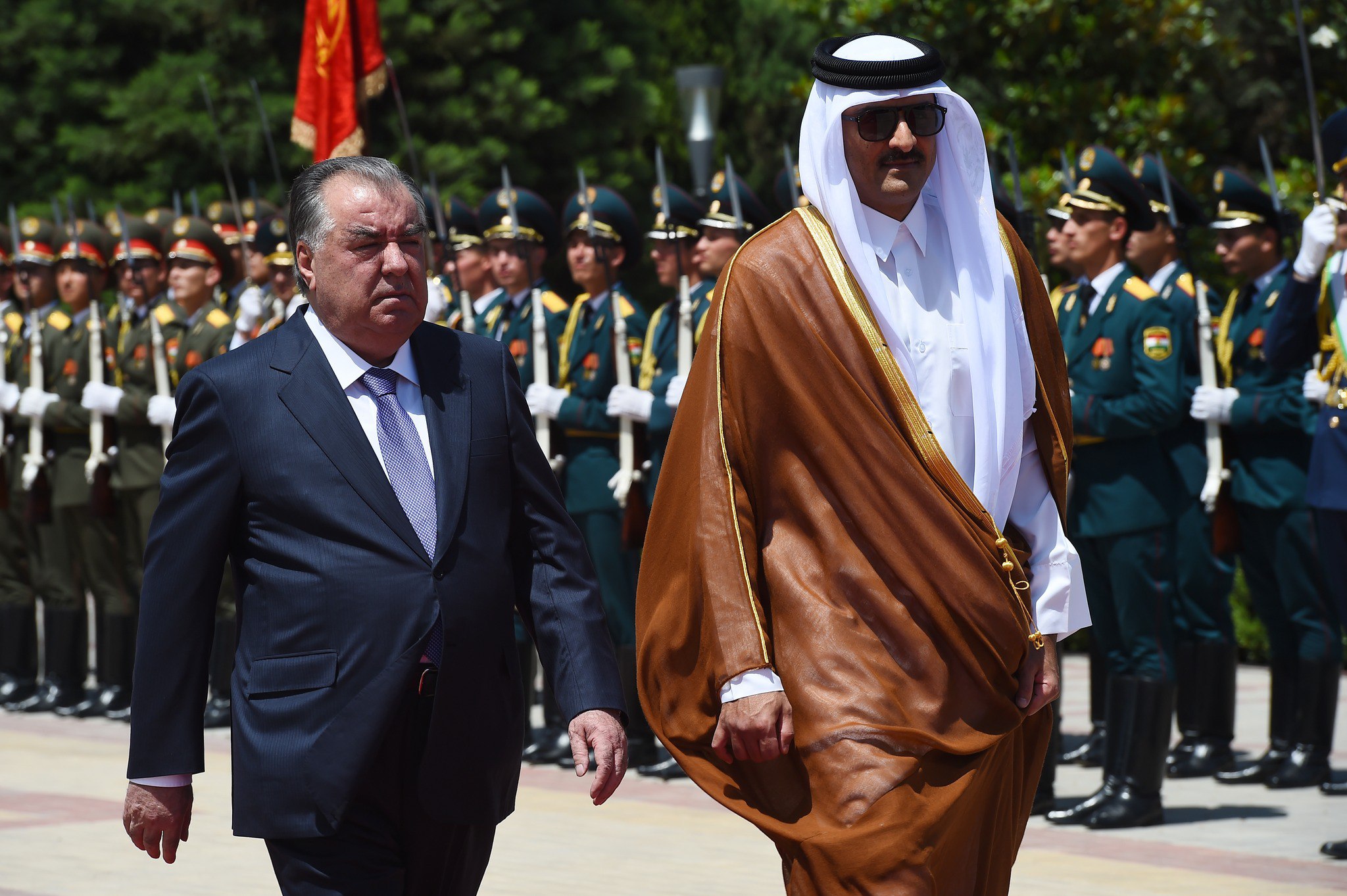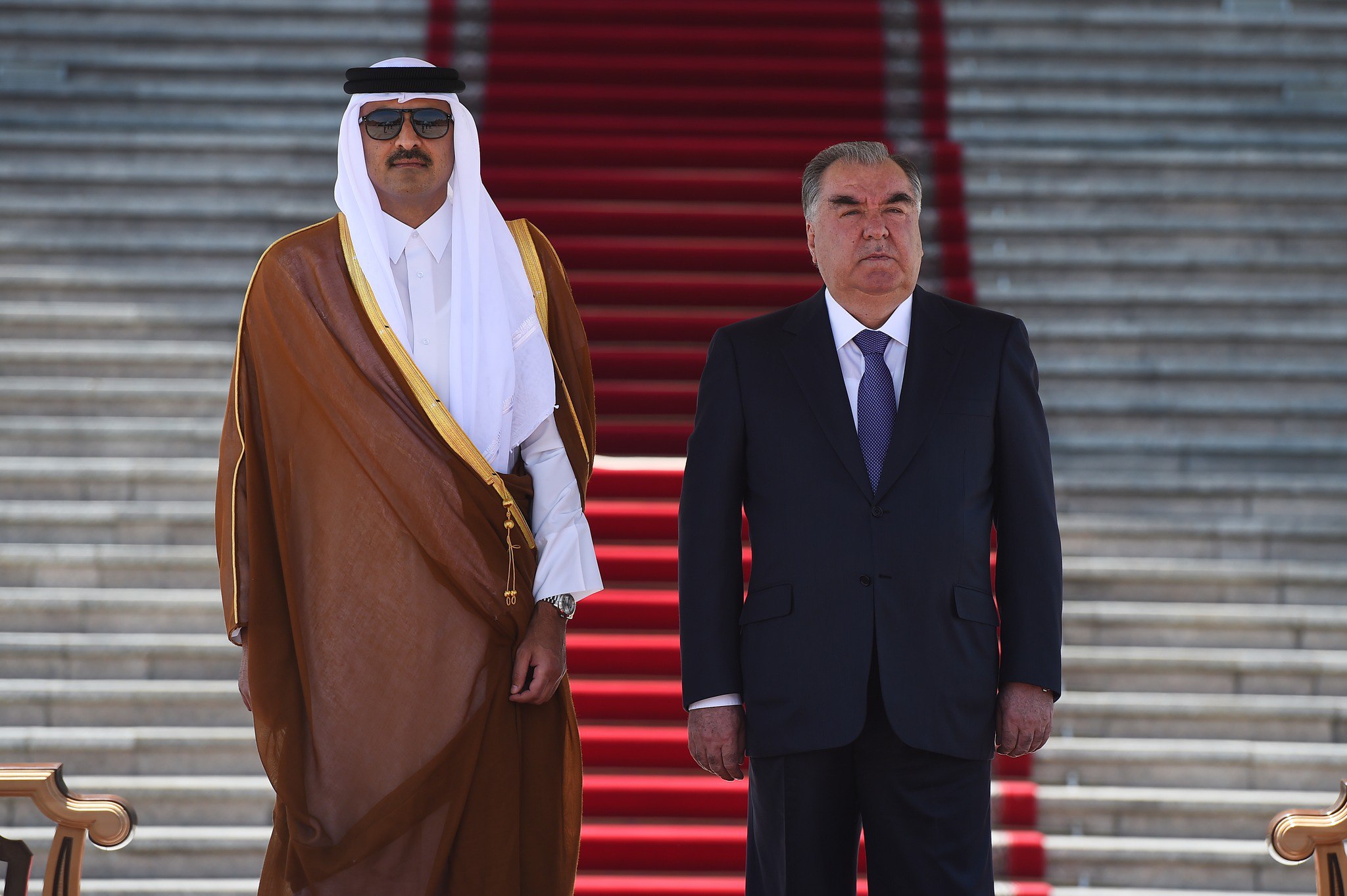Tajik President Emomali Rahmon reportedly warmly greeted and invited to the tribune of honor the Emir of the State of Qatar, His Highness Sheikh Tamim bin Hamad Al Thani.