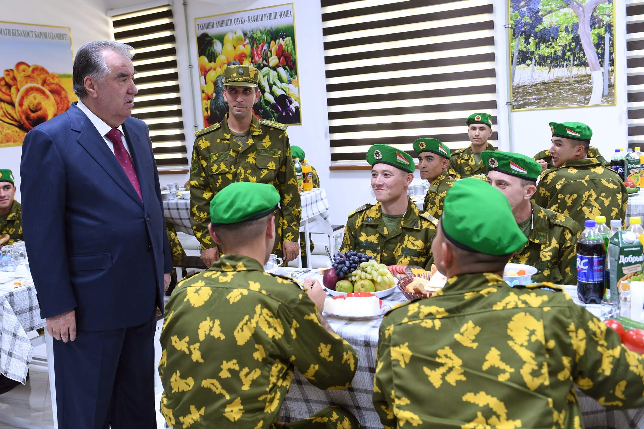 Emomali Rahmon talked with officers and soldiers at the newly built outpost.