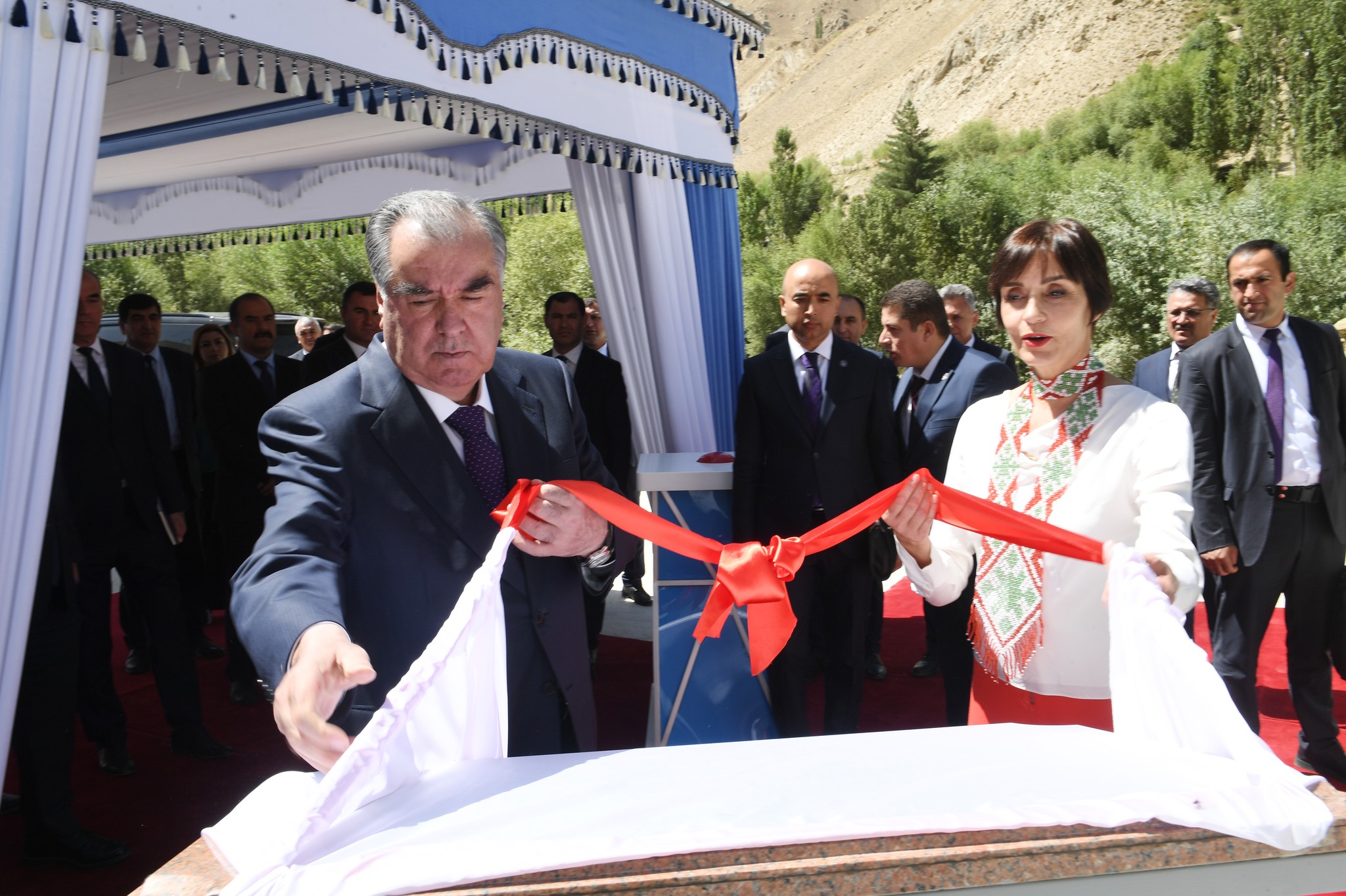 Roshtqala, Viloyati Mukhtori Kuhistoni Badakhshon(VMKB), Tajikistan, August 16th 2023– The Founder of Peace and National Unity, Leader of the Nation, and President of the Republic of Tajikistan His Excellency Emomali Rahmon inaugurated the Sebzor 110kV Substation and Khorog-Sebzor transmission line in the Roshtqala District of VMKB, Tajikistan today. Commissioning of the Sebzor substation is a momentous event that will ensure the efficient transmission of electricity from the 11MW Sebzor HPP to the regional grid. The construction of the 110/35/10kV Sebzor Substation and 18km 110kV Khorog-Sebzor Transmission Line is part of the Pamir Private Power Project – Phase III (PPPP III) funded by the Government of Switzerland’s State Secretariat for Economic Affairs (SECO) in cooperation with the Government of the Republic of Tajikistan and implemented by Pamir Energy Company.