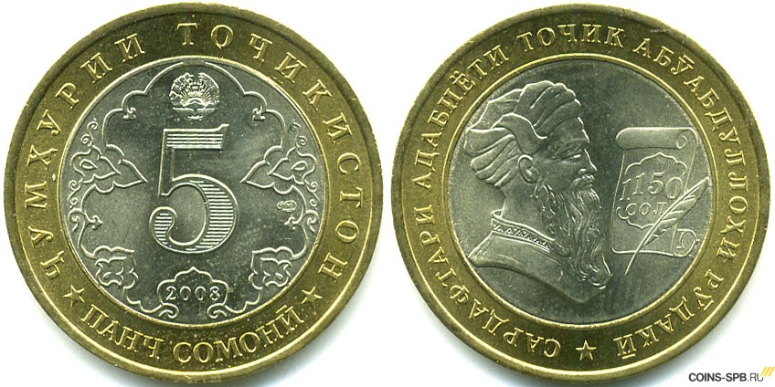 Thus, the one-somoni note carries the image of Tajik known poet and public figure Mirzo Tursunzoda; the three-somoni note carries the image of known Tajik statesman, Hero of Tajikistan Shirinsho Shotemour; and the five-somoni note carries the image of known Tajik writer and public figure Sadriddin Ayni.