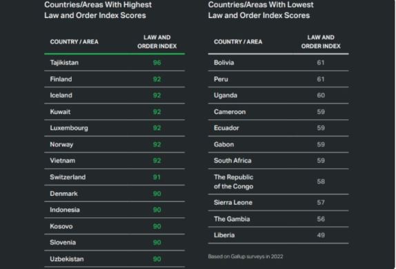 Gallup’s 2023 Global Law and Order report reportedly reveals that a new country feels fells the least safe in the world and another country holds the lowest score in the world on the Law and Order Index.