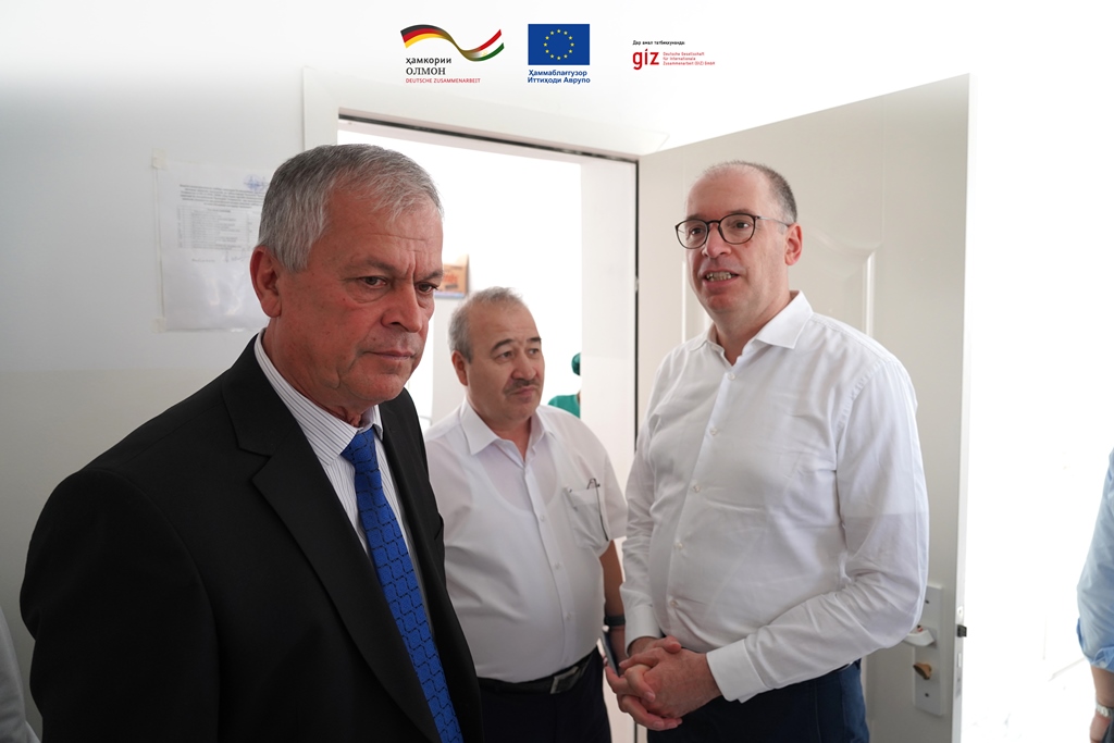 Together with the representative of the Hukumat of Shahrinav district, GIZ country director in Tajikistan Sabine Olthof, and other officials, Niels Annen, State Secretary of Parliament and Federal Ministry for Economic Cooperation and Development (BMZ) visited a rural health center (RHC). During the visit, Niels Annen, State Secretary of the Parliament and the Federal Ministry for Economic Cooperation and Development praised the quality of the work carried out