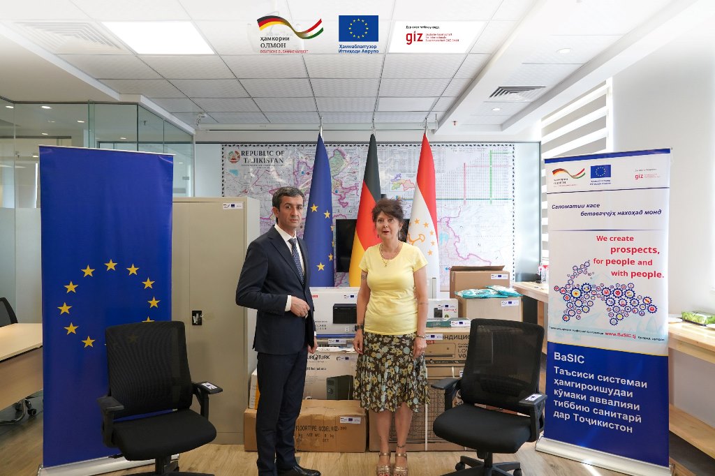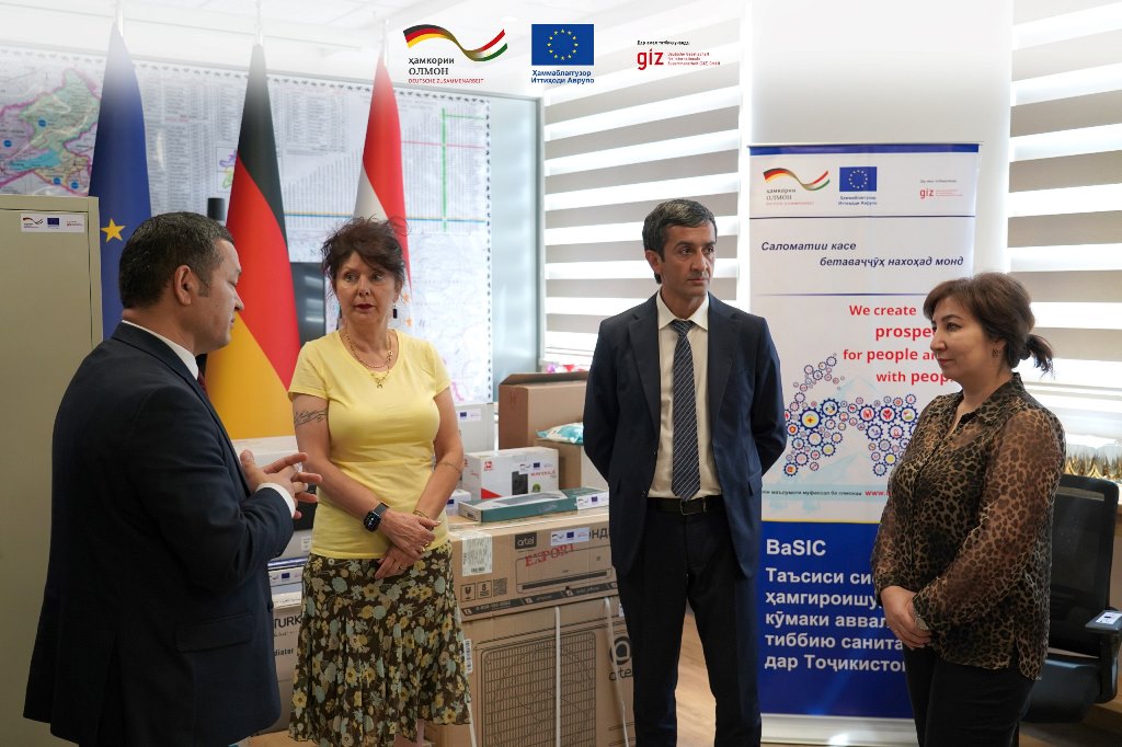 With the financial support from the European Union (EU) and the German Federal Ministry for Economic Cooperation and Development (BMZ), the Deutsche Gesellschaft für Internationale Zusammenarbeit (GIZ) and through the "Building a System on Integrated Primary Health Care in Tajikistan (BaSIC)" project, a wide range of training equipment has been donated to 19 training centers to support medical staff to improve their skills and capabilities. Medical staff working in remote areas will be able to update their skills and knowledge with the equipment provided by the BaSIC project, which will in addition give them access to information and communication technologies.