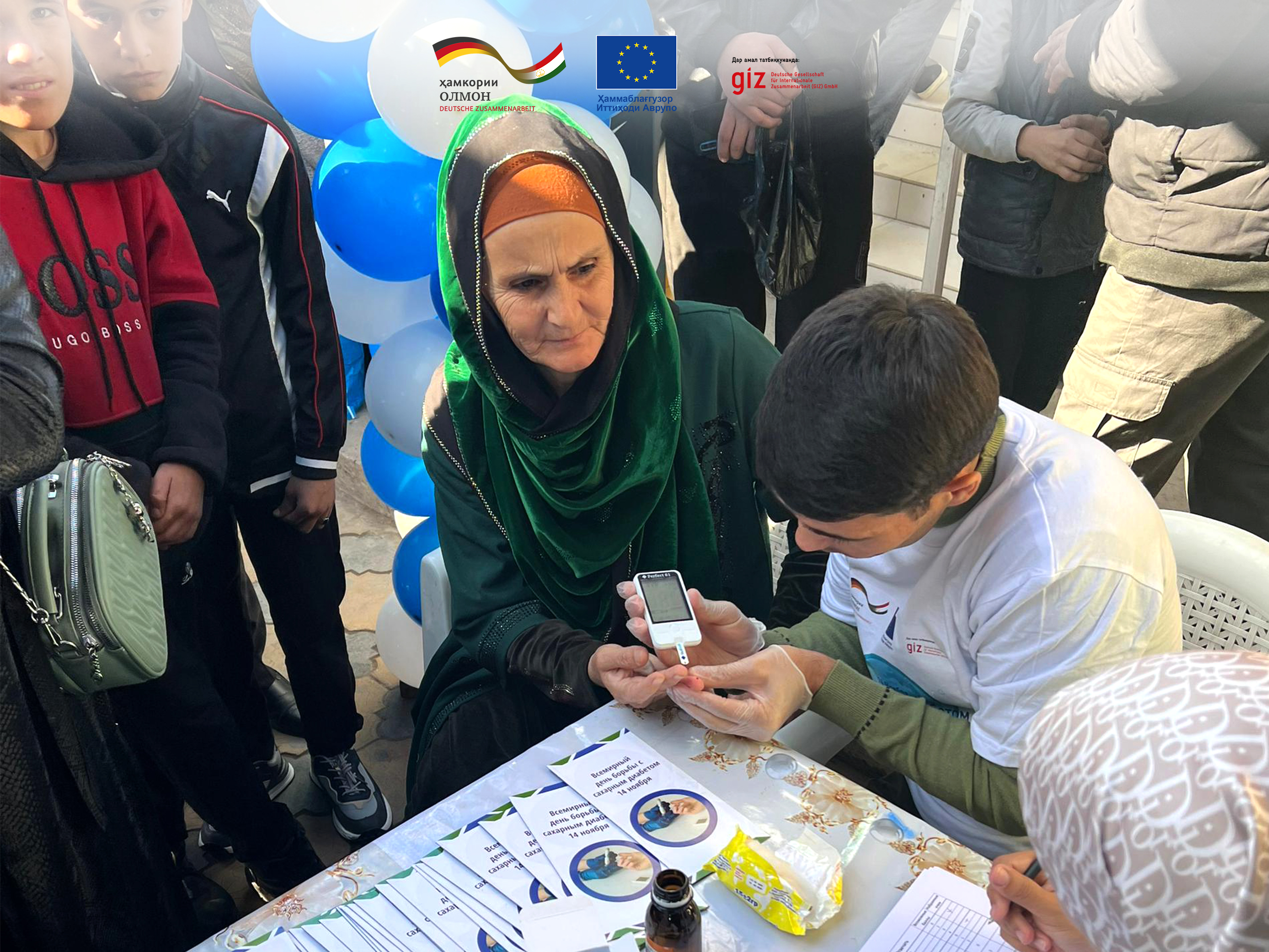 The Avicenna Tajik State Medical University organized an event in Bokhtar city dedicated to the World Diabetes Day (WDD). A large-scale information campaign to raise public awareness of diabetes mellitus was conducted at 3 locations in Bokhtar city: two at the “Farovon” and “Hoji Sharif” markets and one at the City Health Center (CHC). During the whole day, volunteers distributed leaflets on risk factors and how to prevent the disease and explained about the risks of neglecting early detection. The volunteers also encouraged everyone to take a test and measured their blood glucose levels. 334 people were screened for their height, weight, as well as blood glucose levels were measured, and FINDRISK questionnaires were administered.