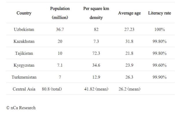 News Central Asia (nCa) says the population of Central Asia is currently in excess of 80.8 million. There has been an average growth of one million during the past ten years.