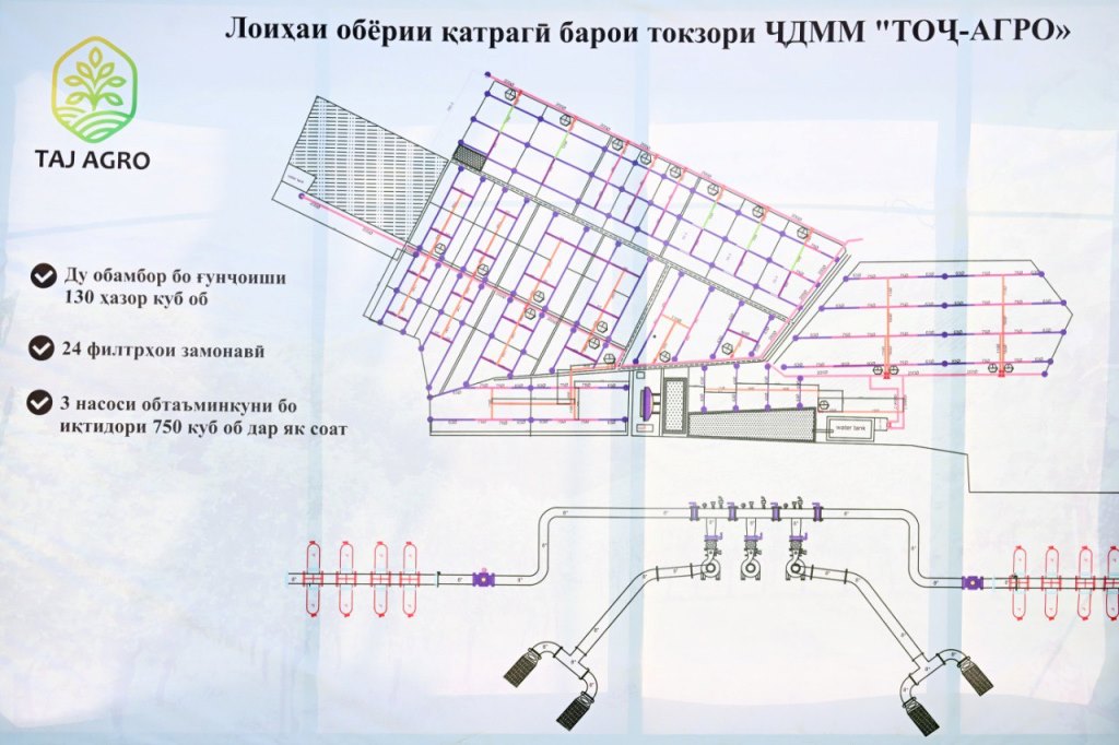 “With the creation of 2 new water treatment basins, the installation of 3 water pumping stations and the introduction of water filtration technology, it became possible to irrigate 50 hectares of land by drip method. Prevention of soil drying, better plant access to nutrition and other factors are the main advantages of drip irrigation.