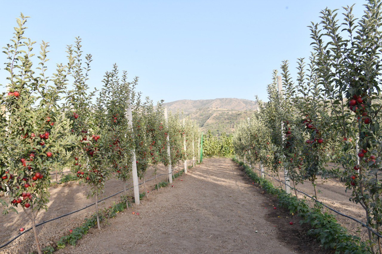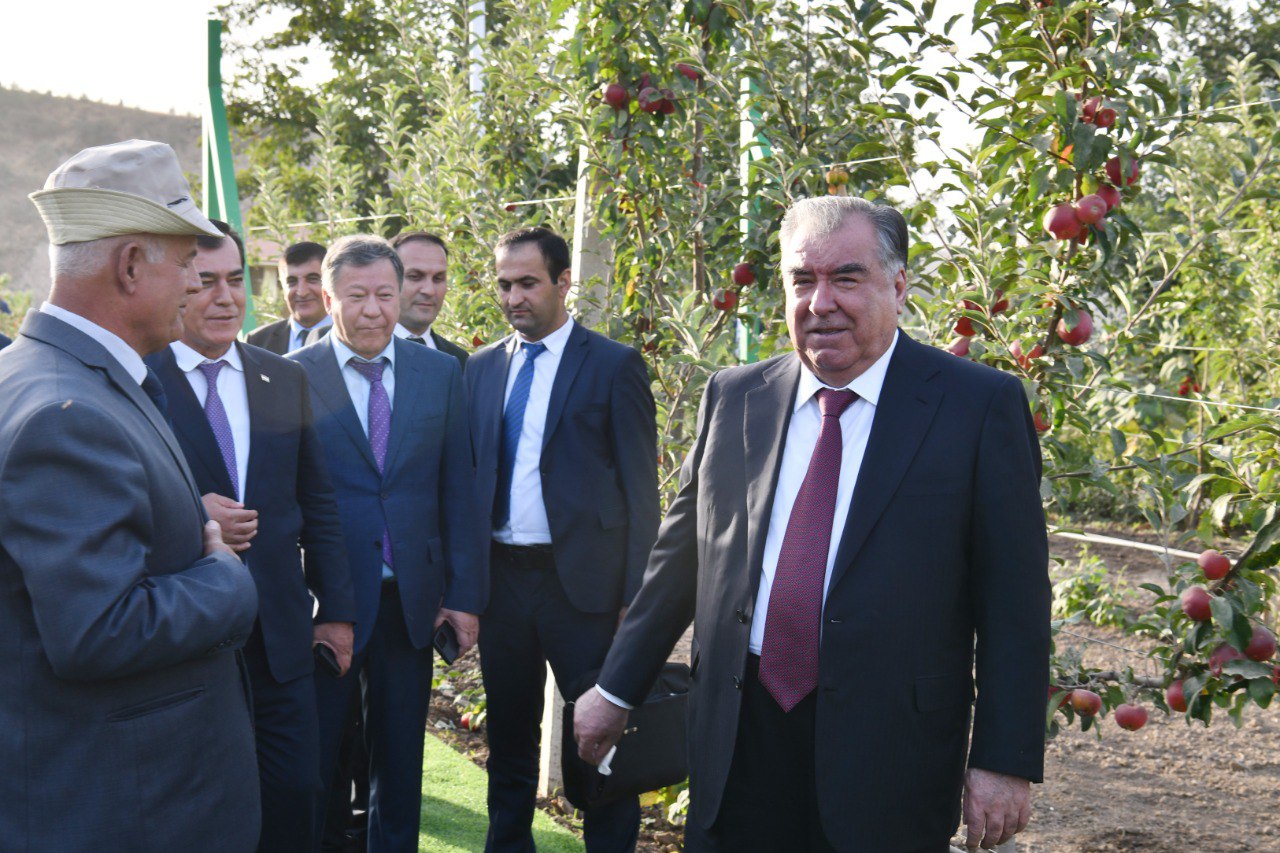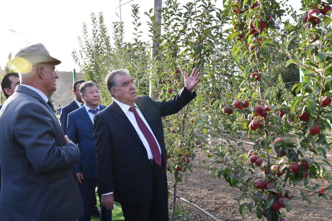 In Khovaling, the President visited the LLC “Obi Khovaling” apple and rosehip gardens, which has 16 hectares of garden and other cultivated lands. Grapes also grow on the farm's lands.