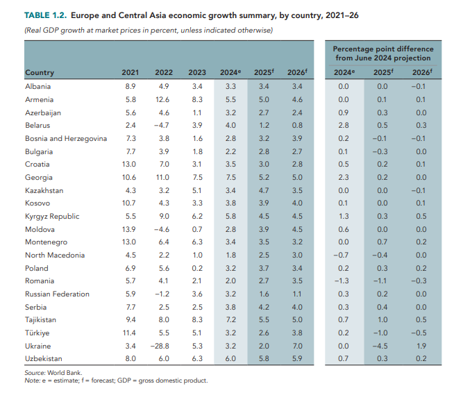 According to the forecasts, economic growth in the region may slow to 3.3% this year compared to 3.5% in 2023, and drop further to 2.6% in 2025.
