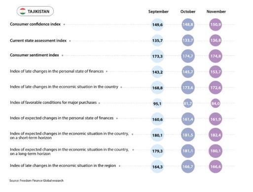 In November 2024, Tajikistan's Consumer Confidence Index (CCI) rose to 150.9 points, interrupting a three-month decline, according to a study conducted by Freedom Finance Global.