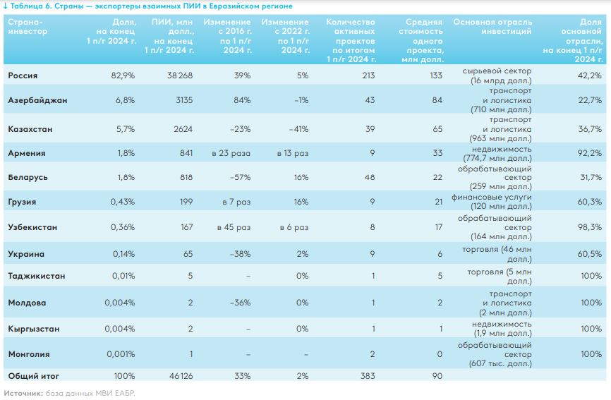 Russia is the absolute leader, responsible for about 83% (over US$38.2 billion) of the region’s total FDI exports.
