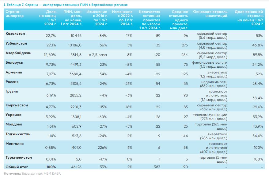 The main recipients of mutual investments are Kazakhstan ($10.4 billion), Uzbekistan ($10.2 billion), and Azerbaijan ($5.8 billion), which together account for nearly 60% of the region’s accumulated FDI as of mid-2024.