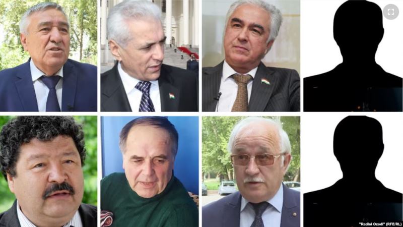 The accused include Saidjafar Usmonzoda, Shokirjon Hakimov, Hamrokhon Zarifi, Akbarsho Iskandarov, Abdulfaiz Atoi, Ahmadsho Komilzoda, Nouramin Ghanizoda, and Jamshed Boyev. These are three political party representatives, three former state officials, and two retired security officers.