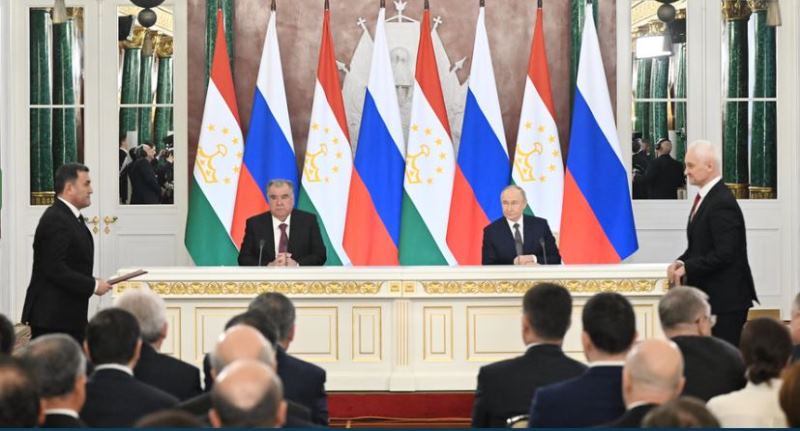 The Tajik president’s official website says the high-level negotiations between the Tajik and Russian delegation resulted in the signing of a number of cooperation documents in the presence of Emomali Rahmon and Vladimir Putin: