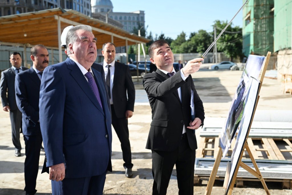 On Thursday May 15, President of Tajikistan Emomali Rahmon and Dushanbe Mayor Rustam Emomali, who is also speaker of Tajikistan’s upper house (Majlisi Milli) of parliament, Rustam Emomali, reviewed the progress of the construction of the National Theater of Tajikistan in Dushanbe, according to the Tajik president’s official website.