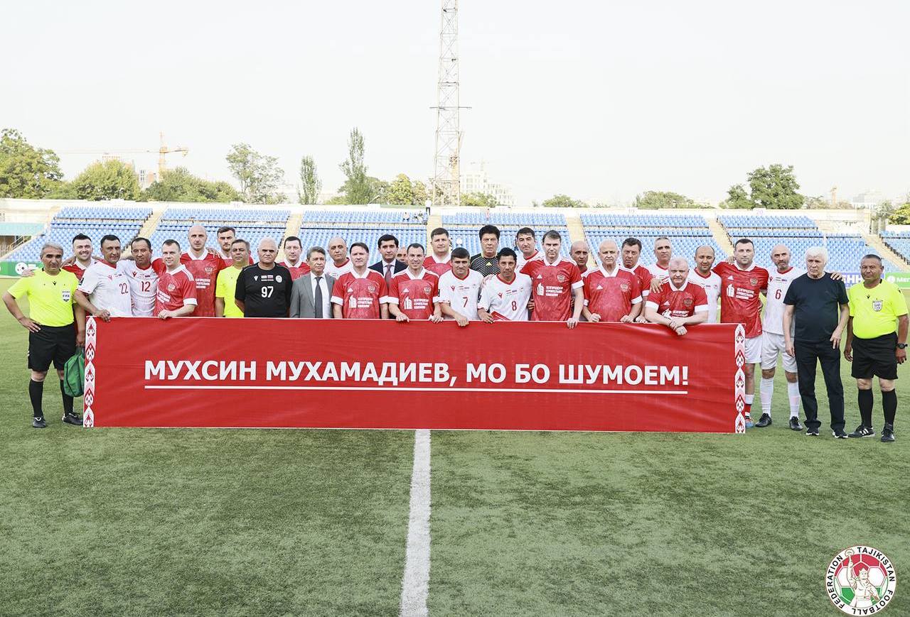 The event began with a show of solidarity as both teams offered support to Tajik football legend Muhsin Muhammadiyev, who is currently recovering from illness.