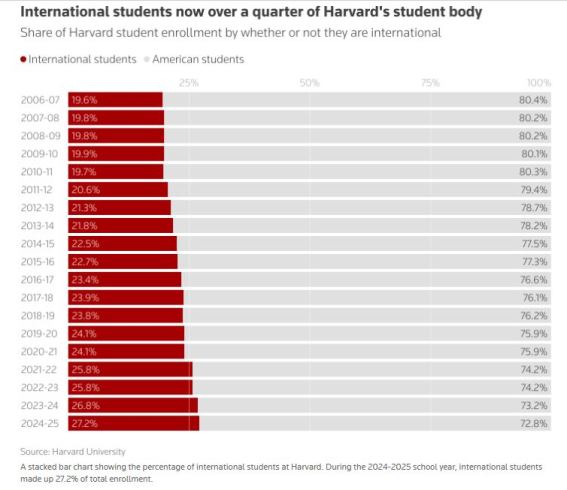 Harvard reports that nearly 7,000 international students from 140 countries currently study at the university—making up over a quarter of the student population. The sudden policy change has left many students uncertain about their ability to complete their studies or return to campus for their final courses.
