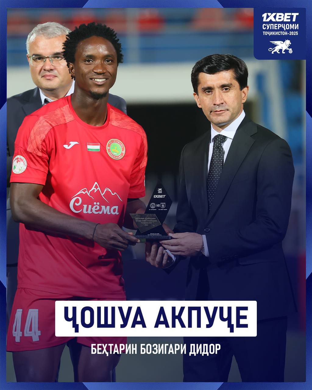 Joshua Akpudje was recognized as the best player of the match for the Tajik Super Cup: the defender of Istiqlol scored a goal in the 83rd minute and helped the team defeat Regar-TadAZ.