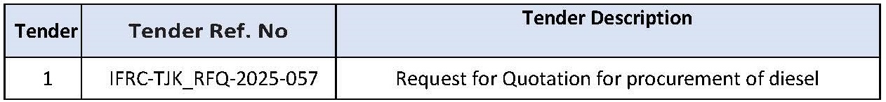 The International Federation of Red Cross and Red Crescent Societies (IFRC), Tajikistan Country Delegation is pleased to invite bids for following commodities:
