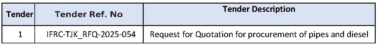 The International Federation of Red Cross and Red Crescent Societies (IFRC), Tajikistan Country Delegation is pleased to invite bids for following commodities: