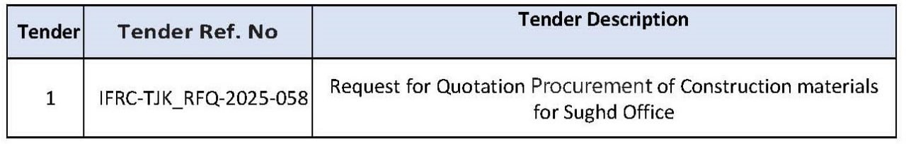 The International Federation of Red Cross and Red Crescent Societies (IFRC), Tajikistan Country Delegation is pleased to invite bids for following commodities:
