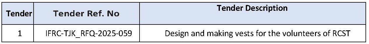 The International Federation of Red Cross and Red Crescent Societies (IFRC), Tajikistan Country Delegation is pleased to invite bids for following service: