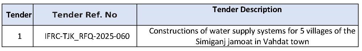 The International Federation of Red Cross and Red Crescent Societies (IFRC), Tajikistan Country Delegation is pleased to invite bids for following service: