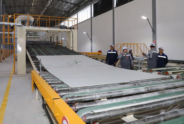 Approximately 75% of the raw materials used are sourced domestically, contributing to import substitution efforts. With a projected annual output of up to 1 million units of gypsum board and 50 tons of additional products, the facility features modern foreign-made equipment ensuring high production quality. Currently employing 40 people, the workforce is expected to grow to 100.