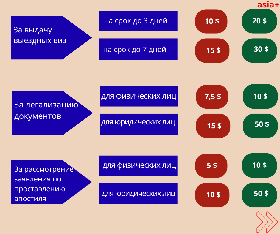 Foreign nationals applying for Tajik citizenship or renouncing it will now be required to pay $200 (approximately 1,860 somonis at the exchange rate as of October 28), up from the previous fee of $50 (about 462 somonis).