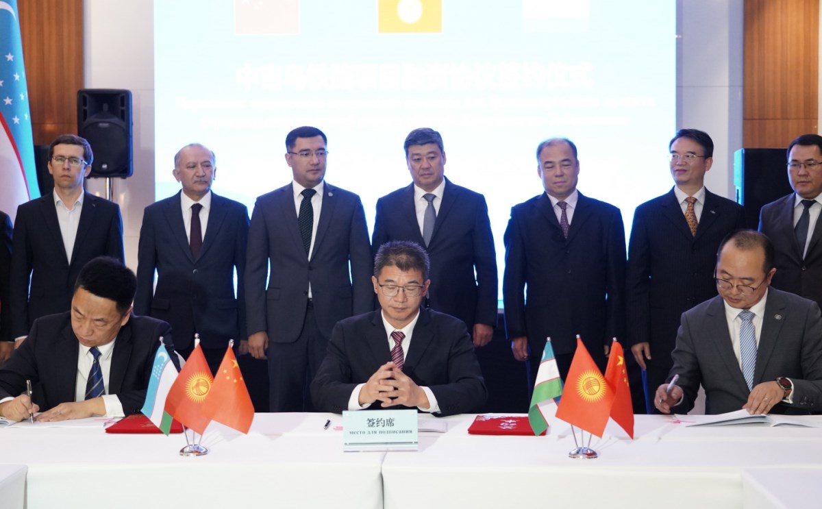 The press service of the Kyrgyz government says the document was signed by representatives of the "China-Kyrgyzstan-Uzbekistan Railway Company" (a joint project company established by the three countries) and the syndicate of Chinese banks, which includes the China Development Bank and Exim Bank.