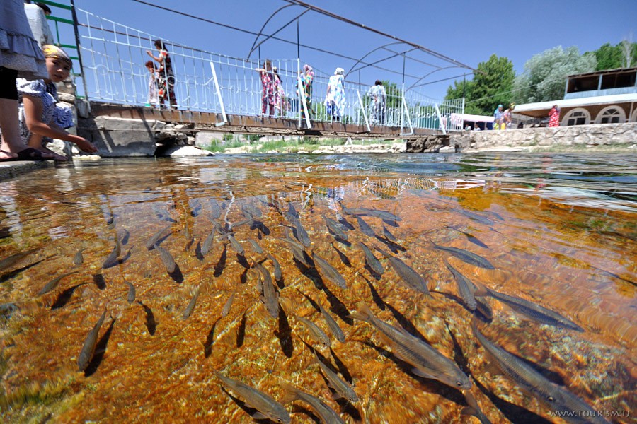 About 230 kilometers from Dushanbe, in Khatlon’s Shahritus District, lies the natural phenomenon of Chiluchorchashma (“Forty-Four Springs”). Imagine driving through the sun-scorched Beshkent Valley and suddenly discovering, amid the sands, a place where 44 crystal-clear springs burst from the ground.