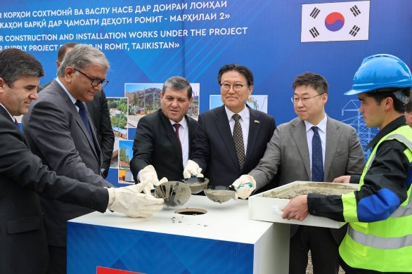 At the ceremony, Korean Ambassador to Tajikistan Jeon Sung-sik, Deputy Minister of Energy and Water Resources Bahodour Safarzoda, and Vahdat Mayor Mirzo Ismoilzoda addressed attendees.