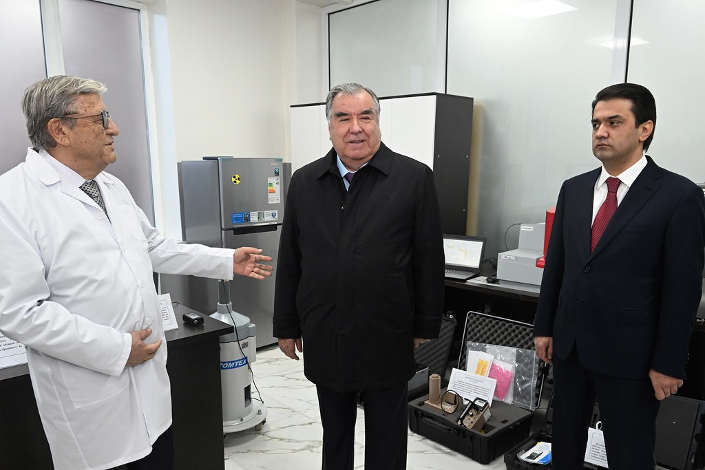 Также Эмомали Рахмон и Рустам Эмомали сегодня приняли участие в сдаче в эксплуатацию нового здания Регионального центра химической, биологической, радиационной и ядерной безопасности Академии наук Таджикистана.