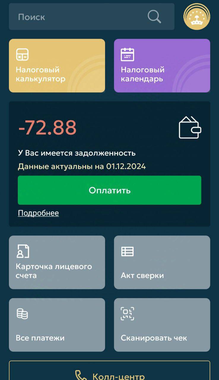 Кстати, на главной странице отображается текущая задолженность или предоплата по налогам.