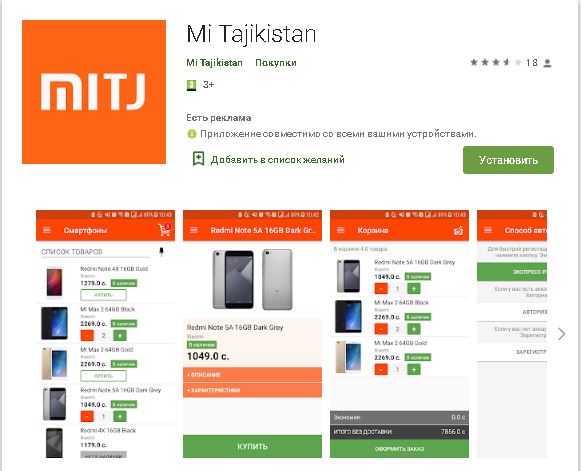 На сегодня в Таджикистане есть только 3 приложения: Tel.tj — интернет магазин, Mi Tajikistan, Tajtel. С помощью этих приложений заказать и купить можно только мобильные телефоны и гаджеты.