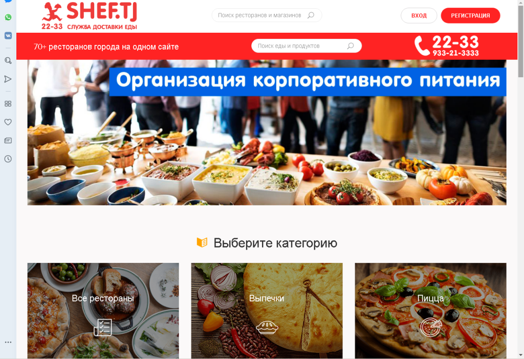 Например, сервис SHEF.TJ занимается доставкой еды из более 70 точек общепита Душанбе. Чтобы заказать еду, нужно на приложении или сайте подобрать подходящий по ассортименту и ценам ресторан или кафе, сделать заказ по меню и забрать его у курьера. Доставка — от 20 минут после приготовления рестораном блюда.