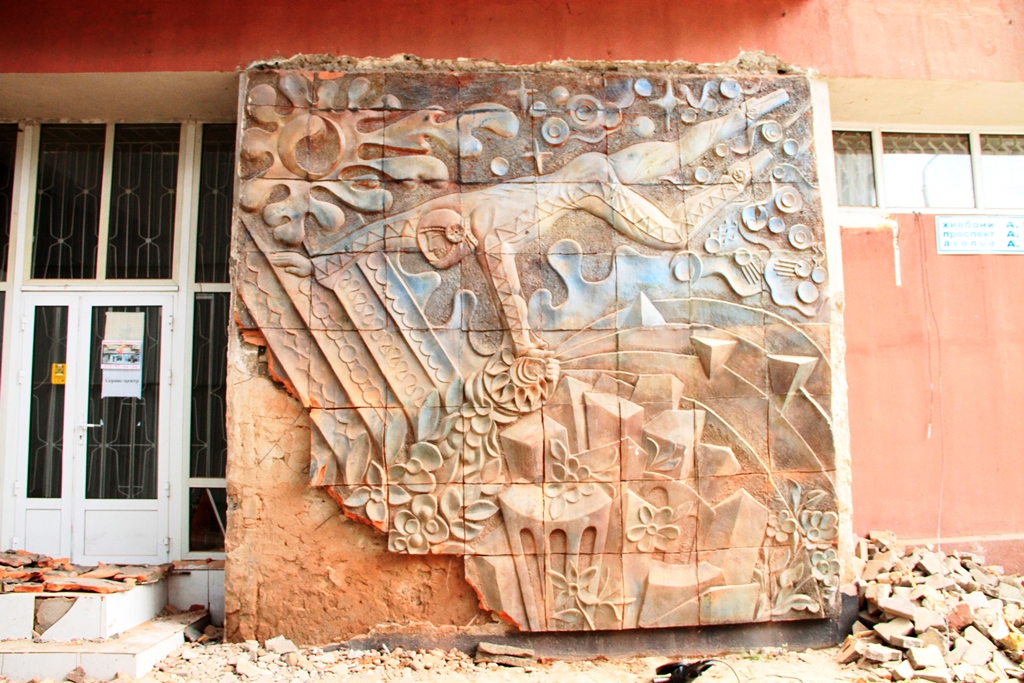 В отделе охраны историко-культурного наследия Министерства культуры «Азия-Плюс» сказали, что барельефы на стене сносимого дома являются произведениями известного художника-керамиста Нигмата Хакимова (1944-2017, Екатеринбург).