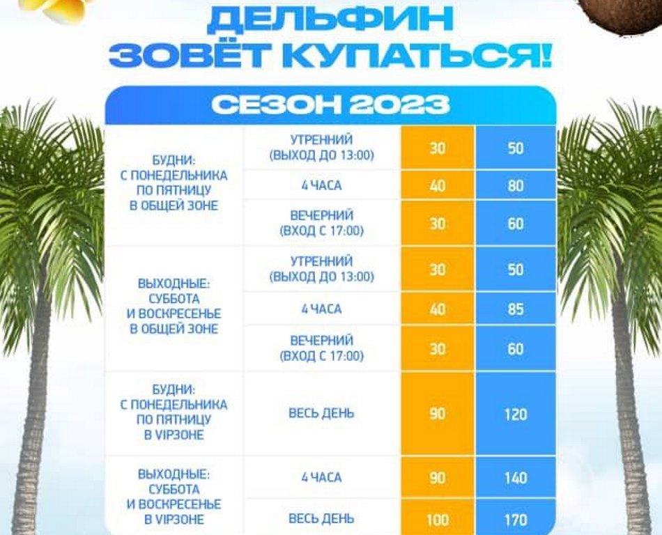 Стоимость в «Дельфине» составляет для детей от 30 до 100 сомони, для взрослых от 50 до 170 сомони.