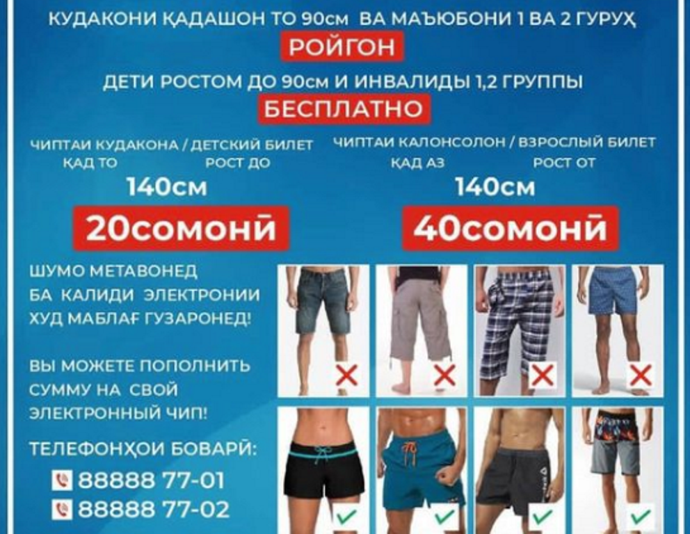 В «Обшороне» цена за четыре часа составляет 20 сомони для детей, 40 сомони для взрослых.