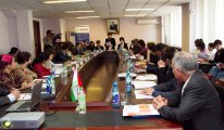 Сафири ИМА дар Тоҷикистон хонум Сюзан Эллиотт, мудири шӯъбаи тандурустӣ оид ба масоили занон ва оилаи Дастгоҳи иҷроияи президенти ҶТ хонум Лола Бобоҳоҷиева, роҳбари Агентии омори назди президенти ҶТ хонум Бахтия Муҳаммадиева ва муовини якуми вазири тандурустӣ хонум Саида Ҷобирова дар муаррифии натоиҷи қаблии Тадқиқоти тиббӣ-демографӣ (ТТД) ширкат варзиданд.