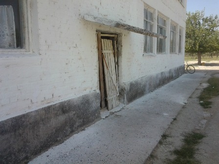 Вақте дохили ҳавлии мактаб шудем, то омодагии онро ба соли нави хониш баҳо диҳем, бинои бетирезаю вайронаи толори варзишӣ диққати моро ҷалб кард. Дар дохили он чизе аз васоили варзишӣ набуд ва деворҳояш ҳама заҳкашида буданд.