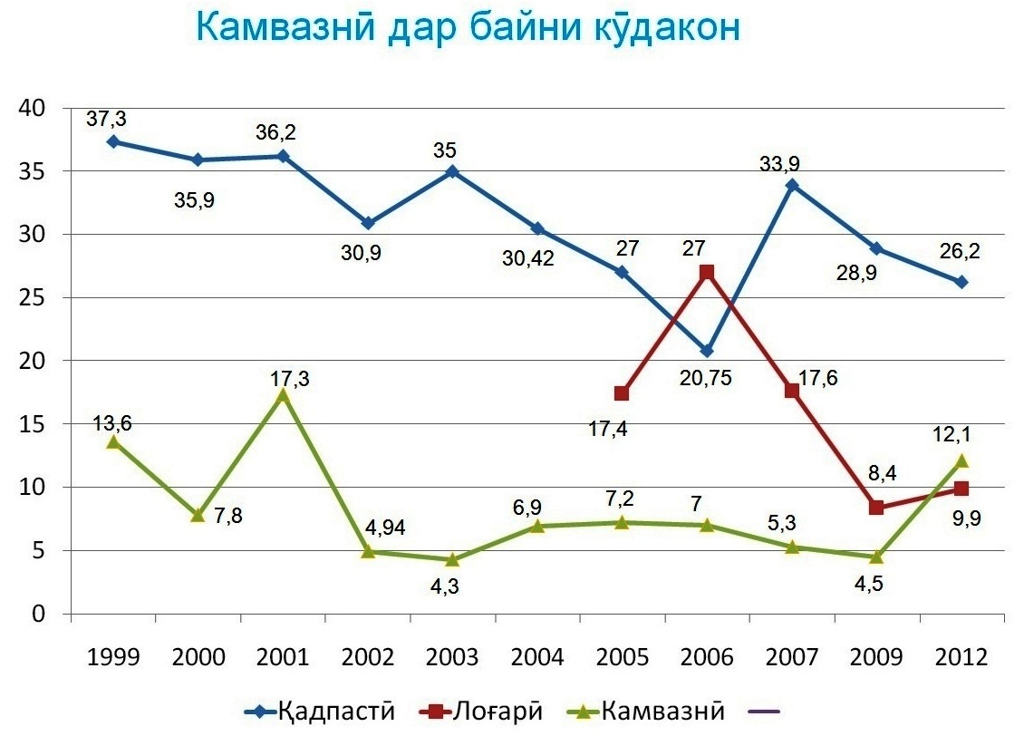 Ба иттилои Абдувалӣ Қулов, пажӯҳиши қаблӣ нишон дод, ки наздики 12%-и занҳои дорои қобилияти таваллуд дар Тоҷикистон аз ғизо танқисӣ мекашанд. Ба гуфтаи ӯ, натиҷаи пажӯҳиши ба тозагӣ гузаронидаи онҳо нигаронкунанда аст. Бино ба тадқиқоти буҷаи хонаводаҳо, ки аз тарафи коршиносони Бонки ҷаҳонӣ гузаронида шуда буд, 35,6%-и аҳолии кишвар камбизоат ба шумор мераванд. Дар соли 2003 ин нишондиҳанда 72 дарсади аҳолии Тоҷикистонро ташкил медод.